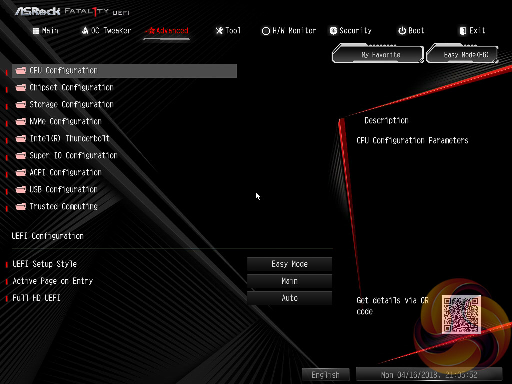 The remit of the advanced section is to give users the “everything else” of compatibility and functional UEFI options for on-board hardware that aren’t found in OC Tweaker. An inclusion at the bottom of the Advanced section is the ability to toggle the UEFI into a full HD mode which is disabled by default, at least it was on our test system monitor.