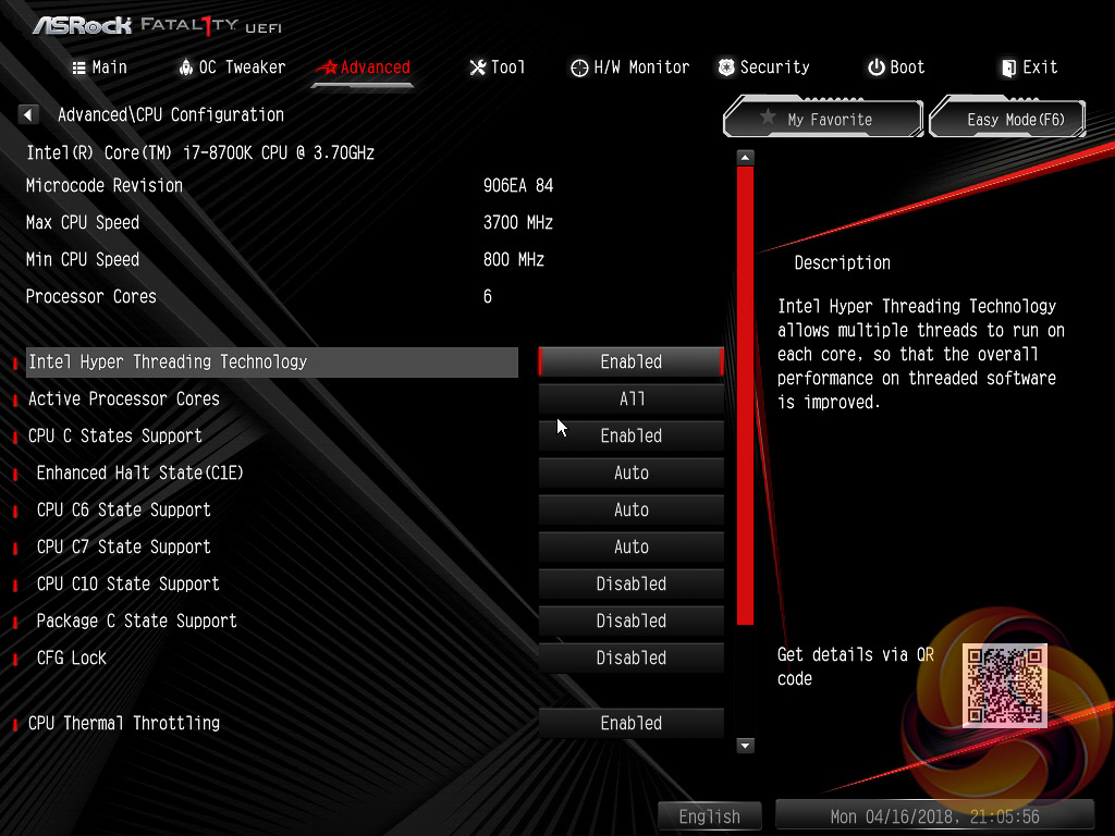 Pressing F6 takes you into the Advanced mode which starts with the Main page that overviews the UEFI version, installed processor and DRAM information. The My Favorite tab contains all recently accessed UEFI settings.