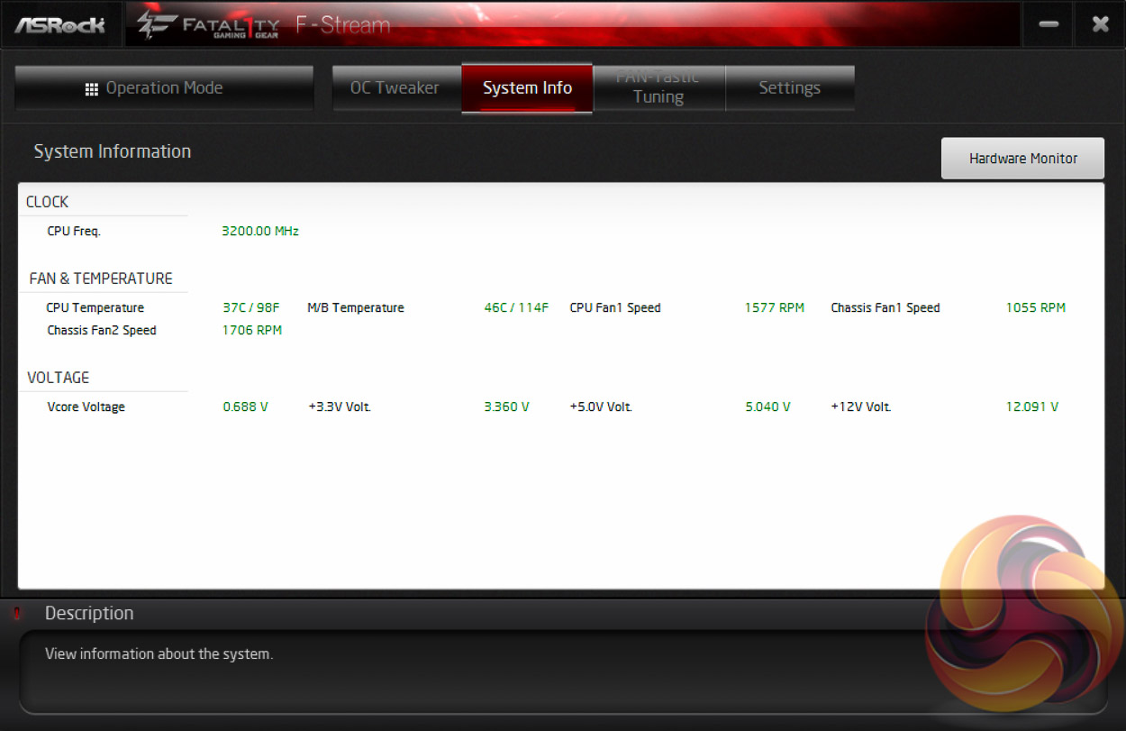 F-Stream, the Fatal1ty-branded A-Tuning, is ASRock’s equivalent to ASUS AI Suite, Gigabyte EasyTune and MSI Command Centre. This software allows you to overclock on the fly (OTF) and tune the fan speeds with the ASRock Fan-Tastic tuning. It’s a reasonably well polished piece of software, is light on system resources and not very intrusive.