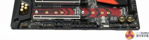The three M.2 slots are well placed in and around the PCIe lanes to the point where no connectivity is obviously lost to make room for these. ASRock has managed to shrink the size of the PCH heatsink to find some of this extra space. All three M.2 slots support the maximum size of 11cm and all will perform up to 32Gbps through NVMe. However, if all three M.2 slots are populated you will end up losing five of the ten total SATA ports of which all of those 5 are the chipset-powered SATA ports. This perhaps explains why ASRock felt compelled to add the ASMedia SATA controller to provide additional SATA ports.