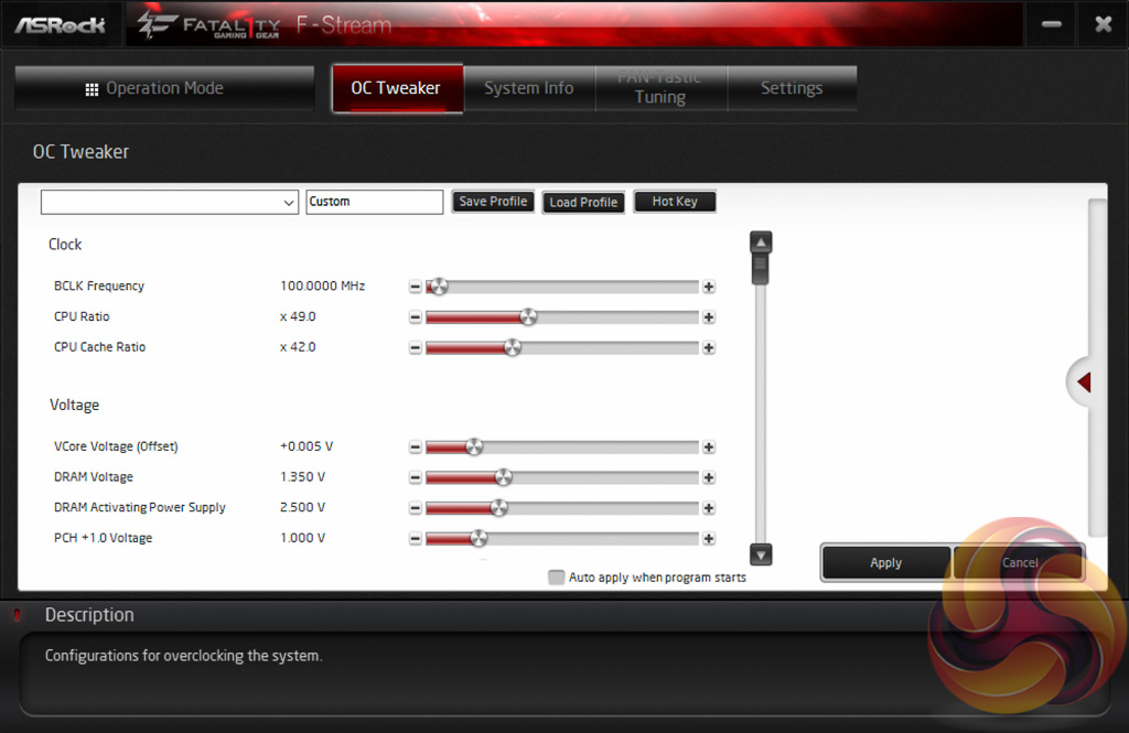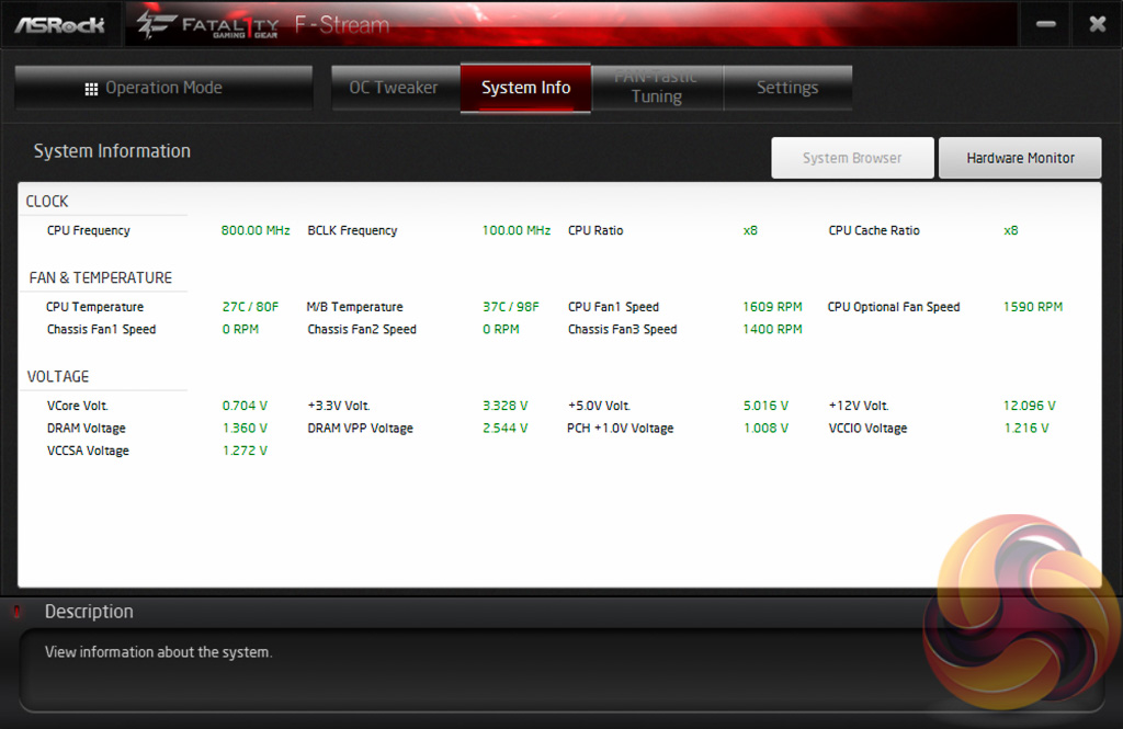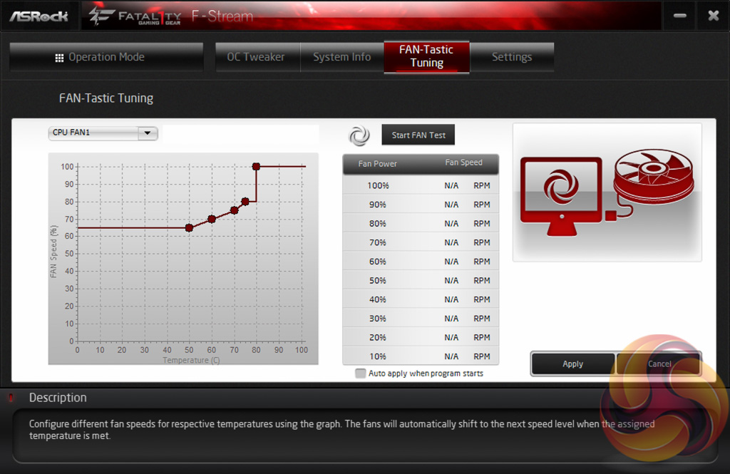 F-Stream, the Fatal1ty-branded A-Tuning, is ASRock’s equivalent to ASUS AI Suite, Gigabyte EasyTune and MSI Command Centre. This software allows you to overclock on the fly (OTF) and tune the fan speeds with the ASRock Fan-Tastic tuning. It’s a reasonably well polished piece of software, is light on system resources and not very intrusive.