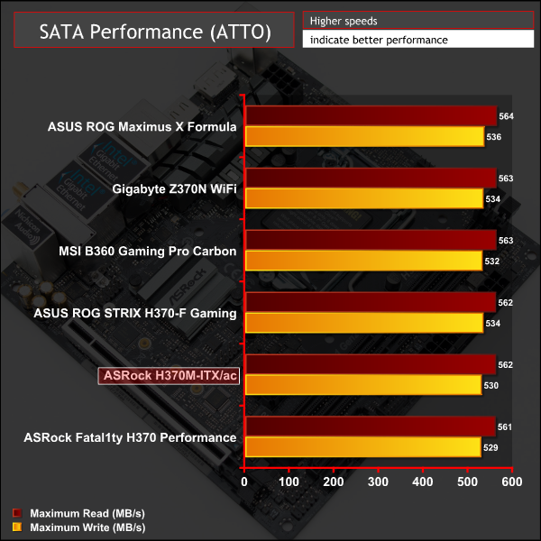 M.2 NVMe performance is as expected and the drive tested with is able to function at full speed. However, no M.2 cooling is provided so the drive throttles within a relatively short time period. This is to be expected for a budget motherboard like this one, buyers interested in M.2 cooling should look to high-end H370 or mid-range Z370 motherboards models and upwards.