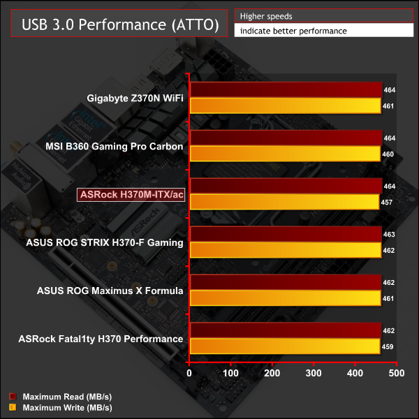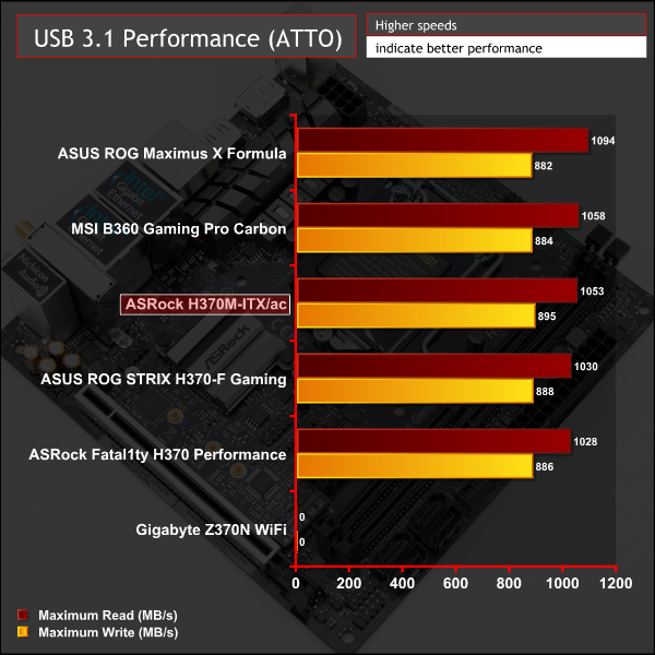 USB 3.1 and 3.0 performance are roughly the same as Z370. H370 and B360.
