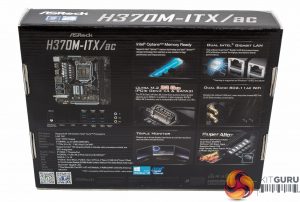 The H370M-ITX/ac has simple packaging that reflects the market positioning of the product. The highlighted features are Intel Optane support, dual Intel Gigabit LAN and Intel WiFi, M.2 PCIe support, three display outputs and the “SuperAlloy” power solution.