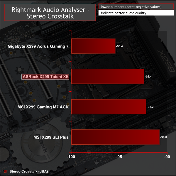 Rightmark Audio Analyser is a freeware benchmarking utility designed to objectively test the performance characteristics of audio solutions. We setup a line-in line-out loop and execute the record/playback test before generating the results report you see below. A sampling mode of 24-bit, 192 kHz is tested where available. If unavailable the closest alternative operating mode available is used and clearly marked.