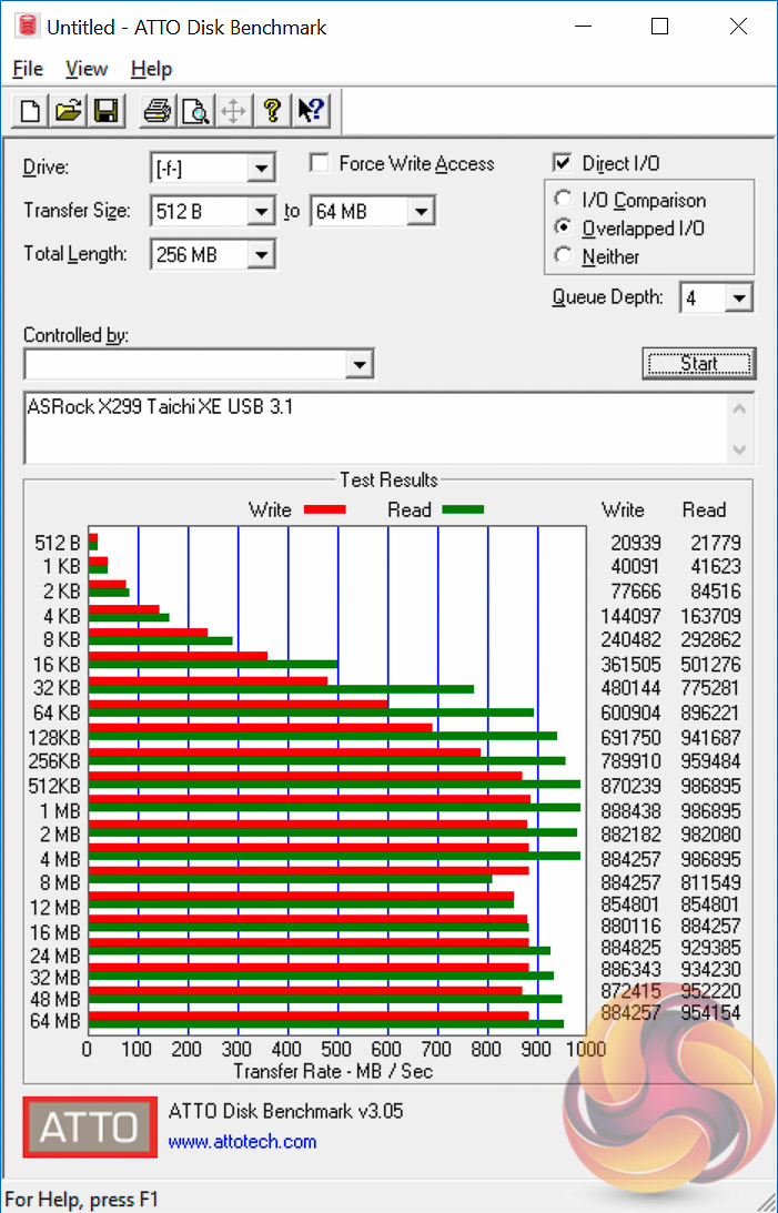 The ATTO disk benchmark is a Windows-based utility for testing storage performance of any storage drive or controller. We use the default benchmark setup.