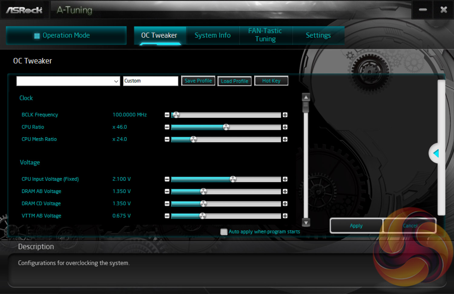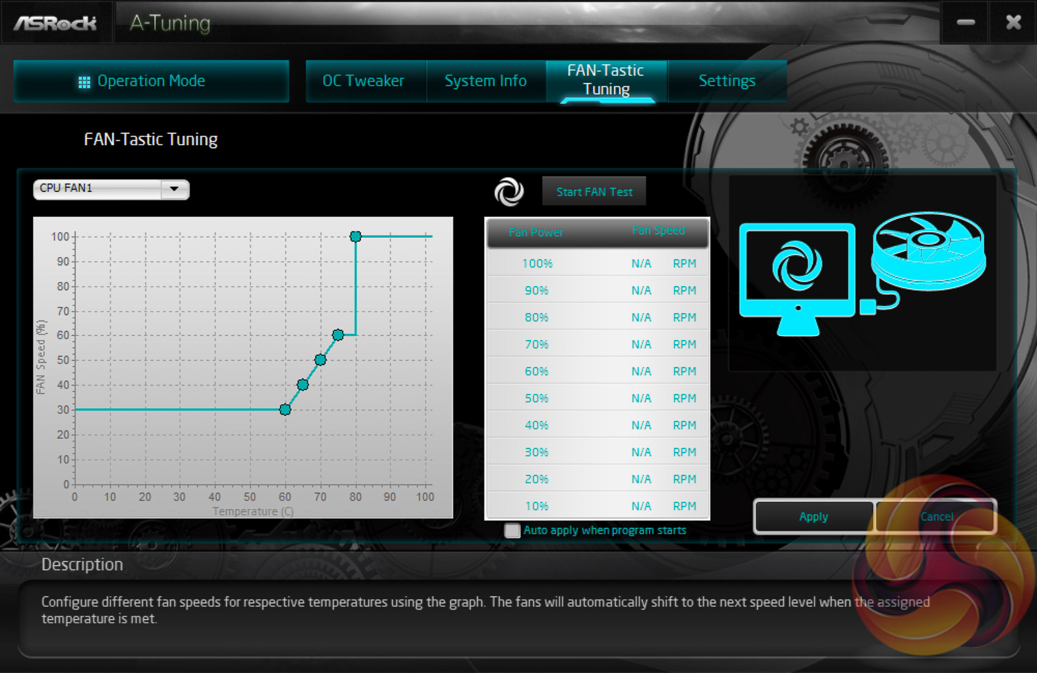 A-Tuning, ASRock’s equivalent to ASUS AI Suite, Gigabyte EasyTune and MSI Command Centre, allows you to overclock on-the-fly and tune the fan speeds with the ASRock FAN-Tastic tuning. It’s a reasonably well polished piece of software, is light on system resources and not very intrusive.