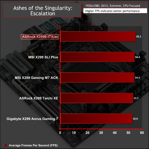 Ashes of the Singularity: Escalation is a Sci-Fi real-time strategy game built for the PC platform. The game includes a built-in benchmark tool and was one of the first available DirectX 12 benchmarks. We run the CPU-focused benchmark using DirectX 12, a 1080p resolution and the Extreme quality preset.