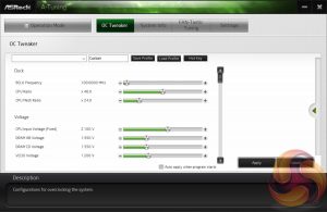A-Tuning, ASRock’s equivalent to ASUS AI Suite, Gigabyte EasyTune and MSI Command Centre, allows you to overclock on-the-fly and tune the fan speeds with the ASRock FAN-Tastic tuning functionality. It’s a reasonably well polished piece of software, is light on system resources and not very intrusive.