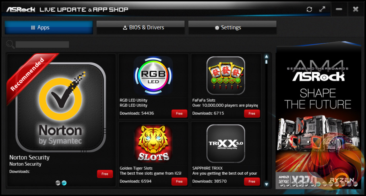 ASRock’s App Shop provides the dual role of serving out ASRock’s own software and approved third party software, but also includes a MSI Live Update-style function which scans for certain BIOS and driver versions and informs the user when a newer version is available. It’s reasonably useful for both of its provided functions and isn’t too intrusive, but does pop up the occasional notification in Windows 10.