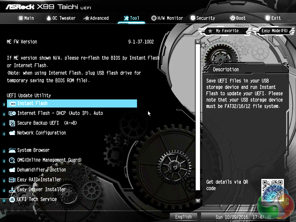 Under the Tool section ASRock has a range of pre-packaged utilities within the UEFI, think of them like “apps” for the BIOS. The most frequently used of which will be the Instant Flash BIOS update utility, or the internet-connected variant Internet Flash which will download, prepare and install the latest UEFI for you with minimal intervention.