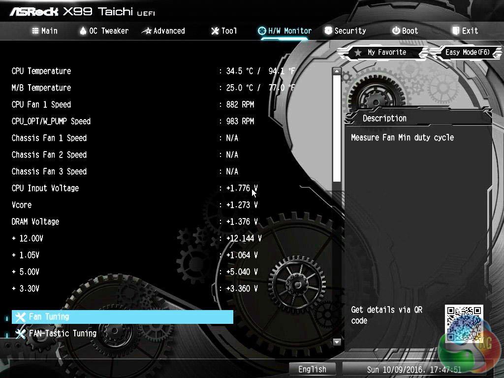 H/W Monitor provides ASRock's full range of temperature and voltage read-outs, the fan tuning utilities are also found here. Since the fan adjustments occur in real-time adjustments you can make changes and hear the difference without needing to save & exit or reboot to make further adjustments.
