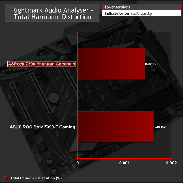 The audio performance of the Realtek ALC1220 codec is excellent and this test just confirms it. ASRock has implemented the audio hardware well and user's will have no issues with the clarity or the loudness of the integrated audio.