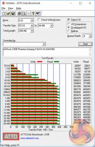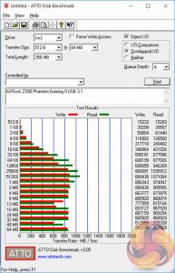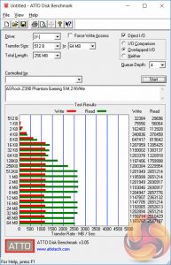 The ATTO disk benchmark is a Windows-based utility for testing storage performance of any storage drive or controller. We use the default benchmark setup.