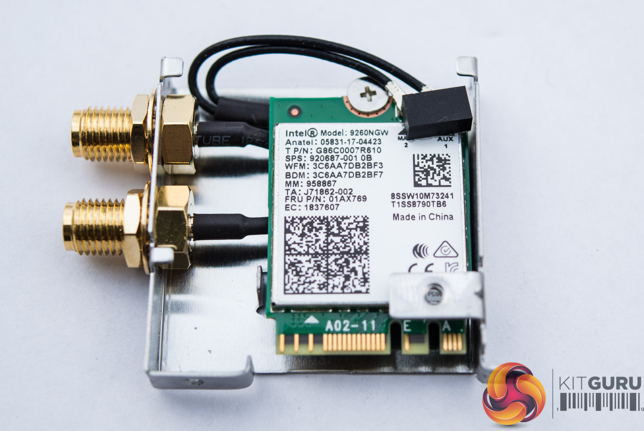 The WiFi solution is an Intel 9260NGW on a PCI Express 1X link, it has two external antenna ports and integrates Bluetooth v5.0 capability.