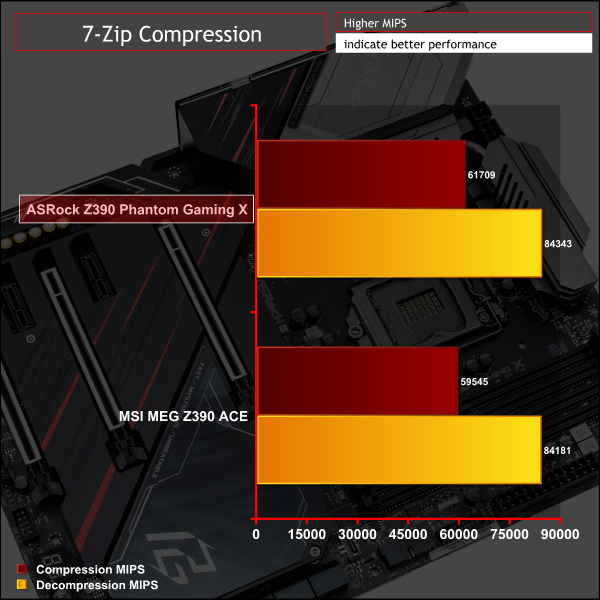 To see comparisons of CPU performance with other Z390 motherboards that were tested using different drivers, a different version of Windows 10 and different application versions, see here.
