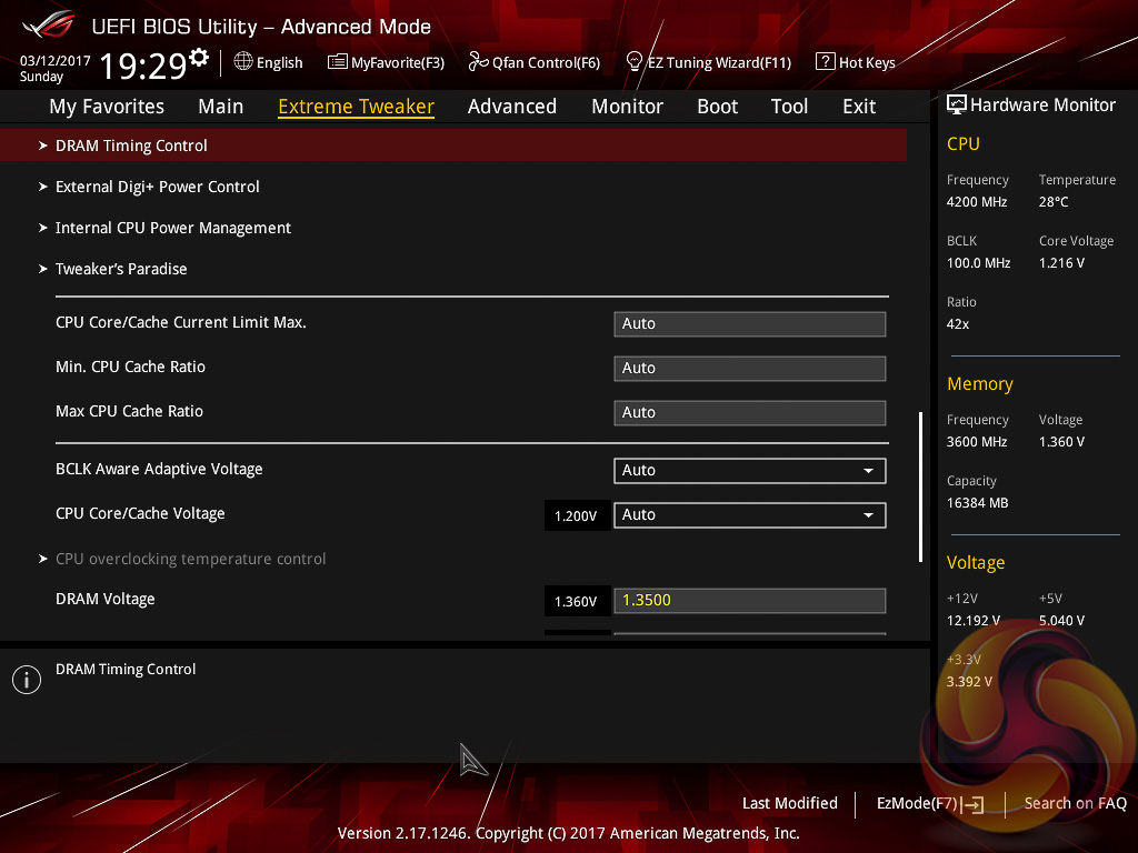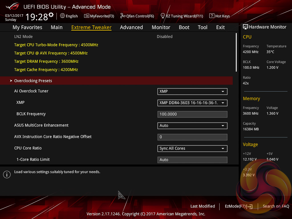 Extreme Tweaker is the UEFI tab which contains the vast majority of performance tuning settings pertaining to the CPU and DRAM. From here you can set XMP profiles, overclock the CPU, set all the various voltages and voltage operation modes, change the Load Line Calibration and considerably more.