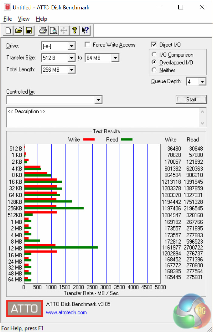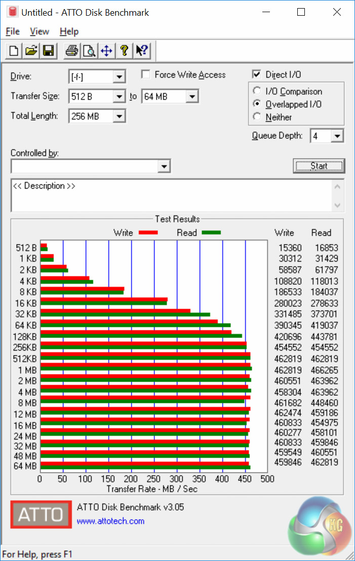 The ATTO disk benchmark is a Windows-based utility for testing storage performance of any storage drive or controller. We use the default benchmark setup.