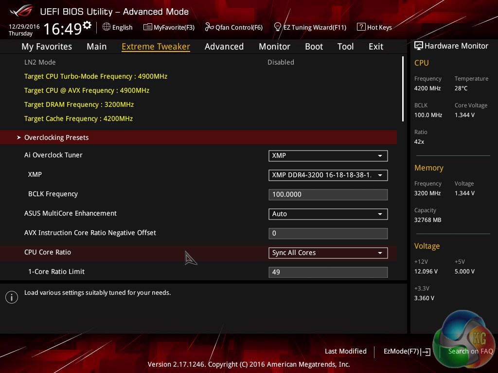 Extreme Tweaker is the UEFI tab which contains the vast majority of performance tuning settings pertaining to the CPU and DRAM. There are additional performance and compatibility parameters to be found under the Advanced section should the need arise.