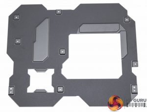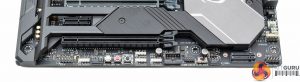 On the underside of the motherboard is the second part of the ROG Armor which is metal, not plastic like the top part, and includes an electrically insulating covering.