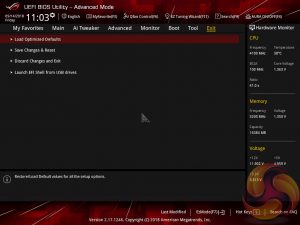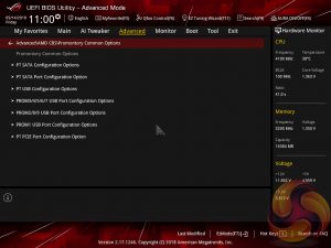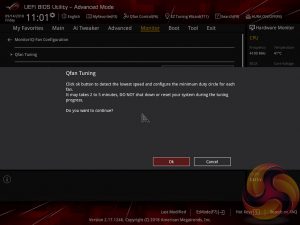 Pressing F7 takes the user into the advanced section of the UEFI but there are some additional tools that can be accessed from the splash screen such as Q-Fan Control and EZ System Tuning.