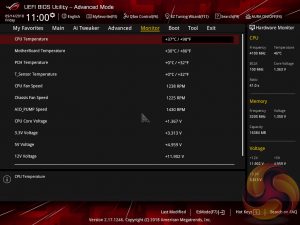 The Monitor tab will allow you to instruct the UEFI how to handle temperature data from the various sensors as well as what to do with fan speed profiles. For example, where a fan speed profile is temperature dependant you can choose which temperature sensor to use.