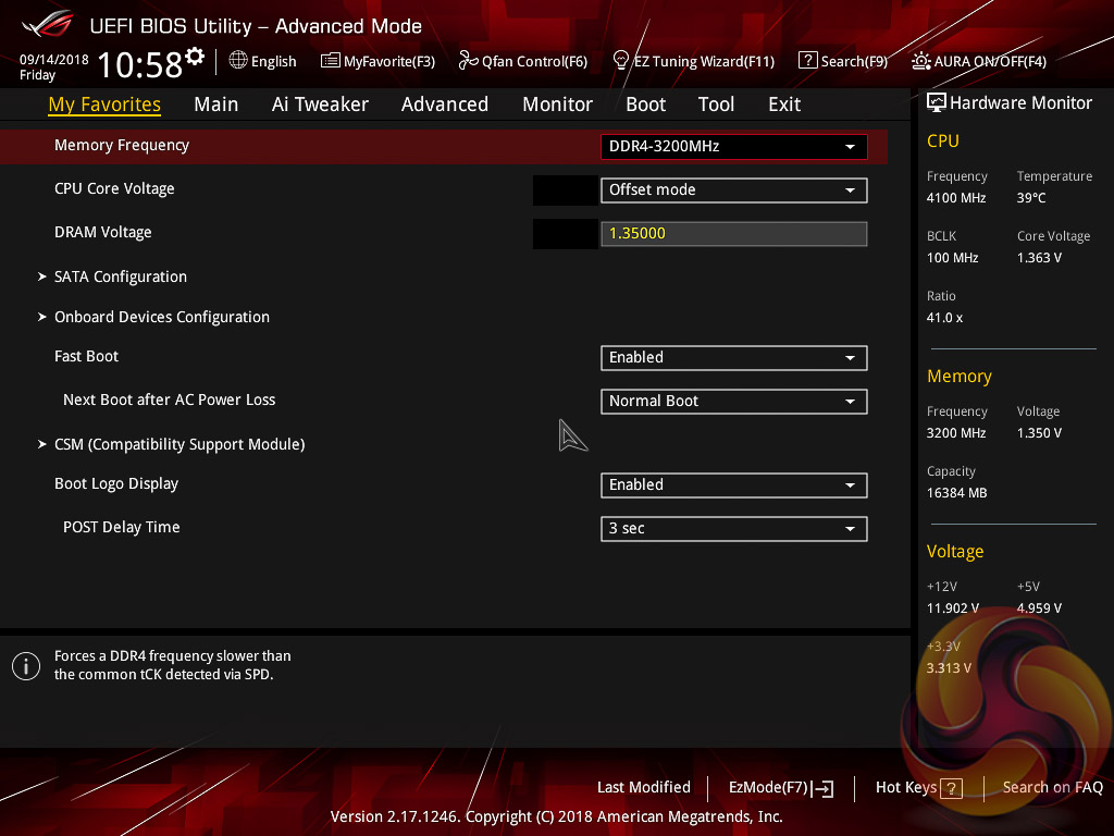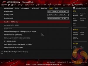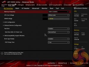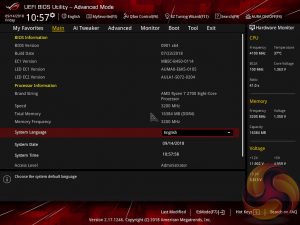 The ASUS UEFI enters straight into the EZ Mode splash screen which has a selection of frequently used settings including XMP profiles (called D.O.C.P on AMD ASUS motherboards), boot device order and fan speeds.