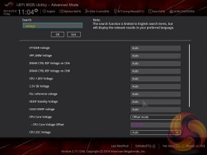 LLC has 5 levels on this motherboard, with 1 being the least aggressive and 5 the most. The CPU voltage modes include override, adaptive and offset.