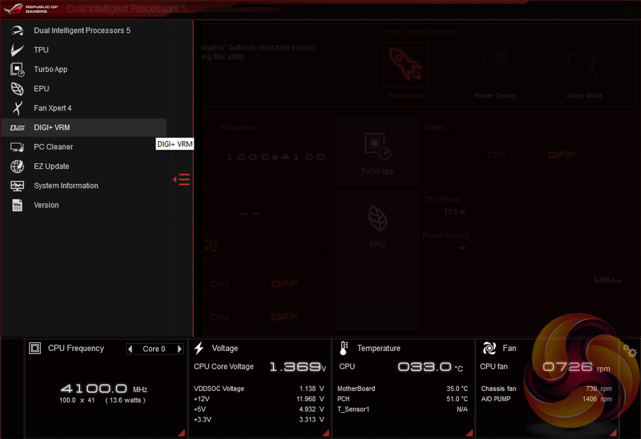 The main software utility for the ASUS motherboard range is the multi-function AI Suite III (Dual Intelligent Processors 5). It contains within it a significant number of utilities including the EPU and TPU, the Turbo App for application-specific turbo behaviour, Fan Xpert 4, on-the-fly overclocking support, a cleaning utility and an ASUS software updating tool.