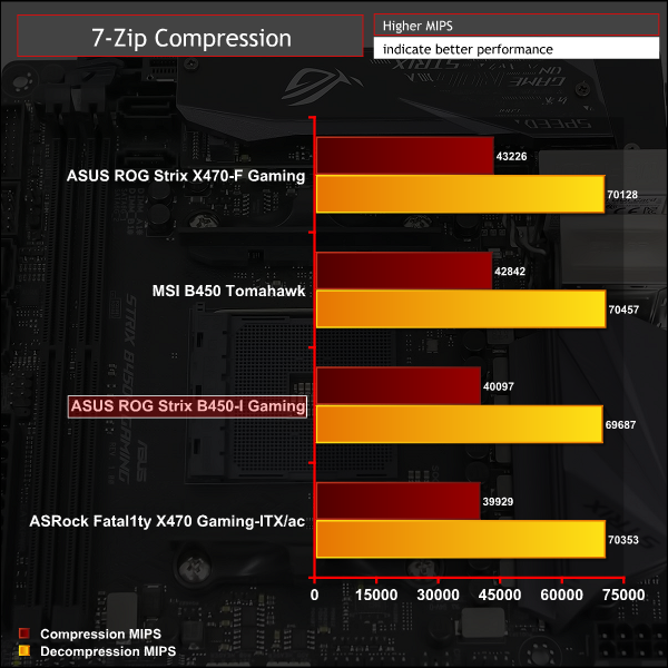 CPU performance is typical of the AMD Ryzen 7 2700 CPU and fairly consistent across all motherboards, which is what we'd expect given the role AMD's XFR2 and PB2 technologies play in ensuring CPU performance is always maximised within thermal and power constraints. There's no performance deficit for B450 compared to X470 chipsets.