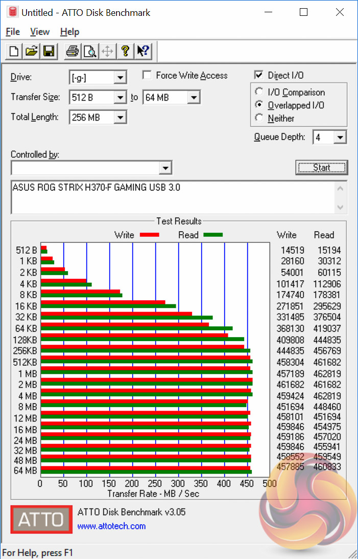 The ATTO disk benchmark is a Windows-based utility for testing storage performance of any storage drive or controller. We use the default benchmark setup.