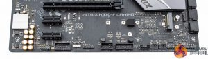 In the middle of the board is the cooled M.2 slot (M2_1) which is cooled by a custom heatsink. There is a fairly significant design oversight here which is that this cooled slot can only run at PCIe 3.0 2X, limiting the speed of most performance M.2 drives, while the full speed M.2 slot (M2_2) is not cooled.