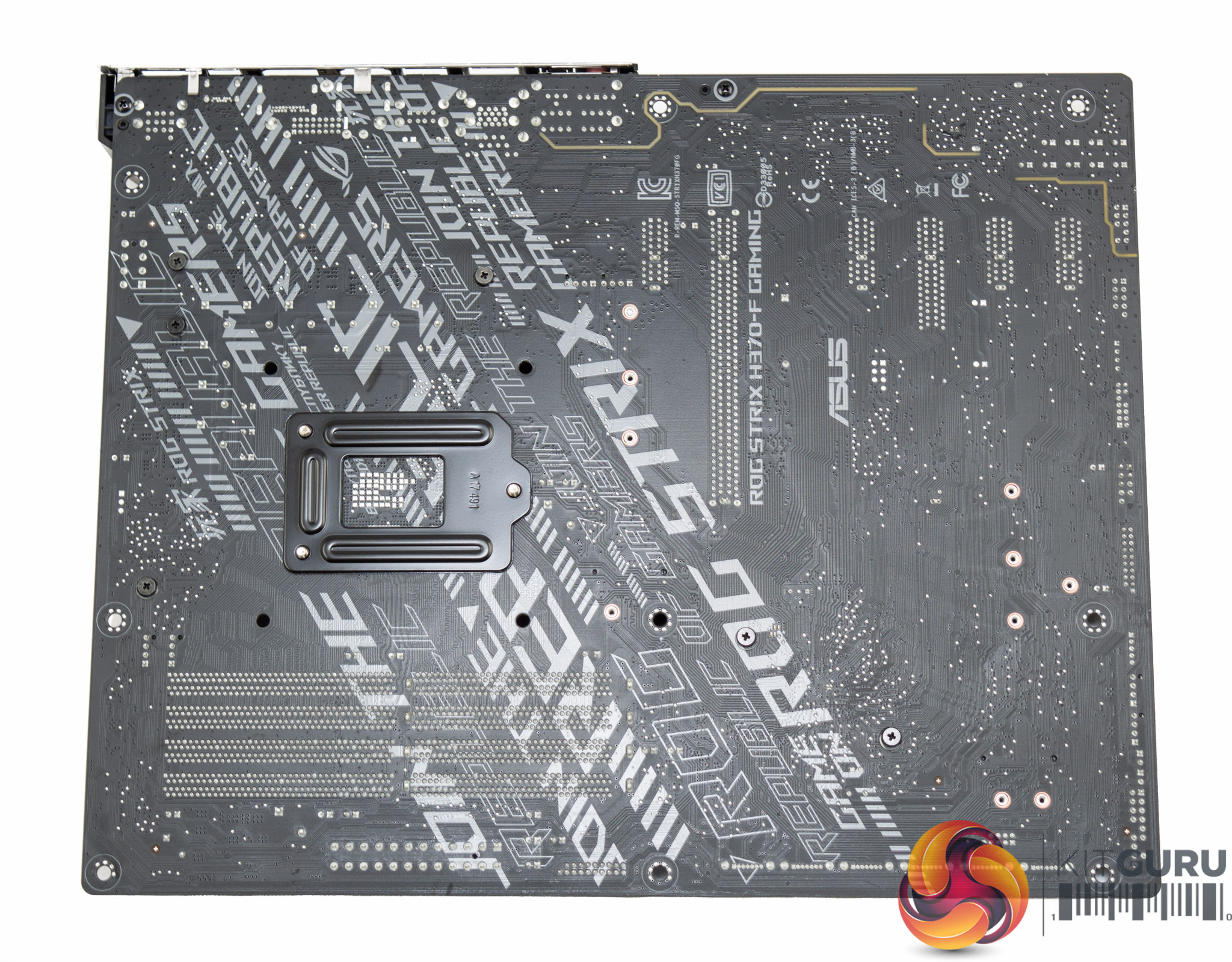 The rear of the motherboard is completely free of soldered components, given the lower density of H370 motherboards compared to Z370. Underneath, the ASUS approach of printing decals and phrases on the PCB can be seen even clearer. It won't be to everyone's taste and comes off as trying too hard to be “cool” and “down with the gamers”, thankfully it is less obvious on the top than the bottom and generally difficult to see in low light.