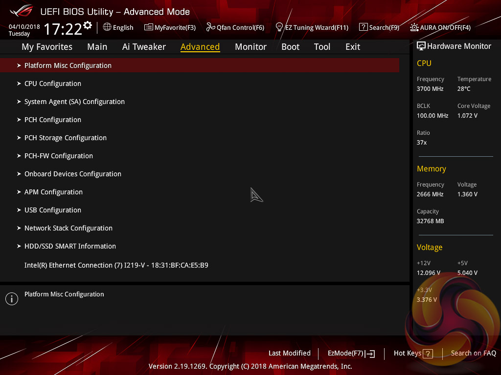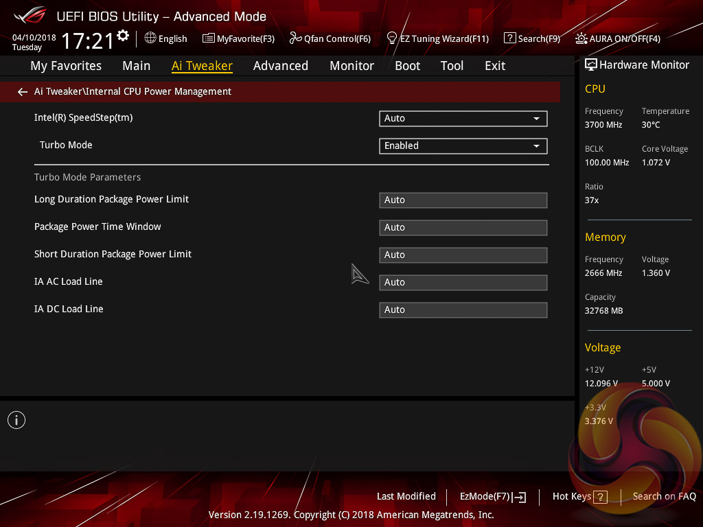 LLC has 9 options – Auto, Default and Levels 1 through 7. The CPU core voltage mode can be changed to override, adaptive or offset but for H370 it's only worth using the voltage options to achieve power consumption reductions since raising the voltage serves little purpose when the CPU is not overclockable.