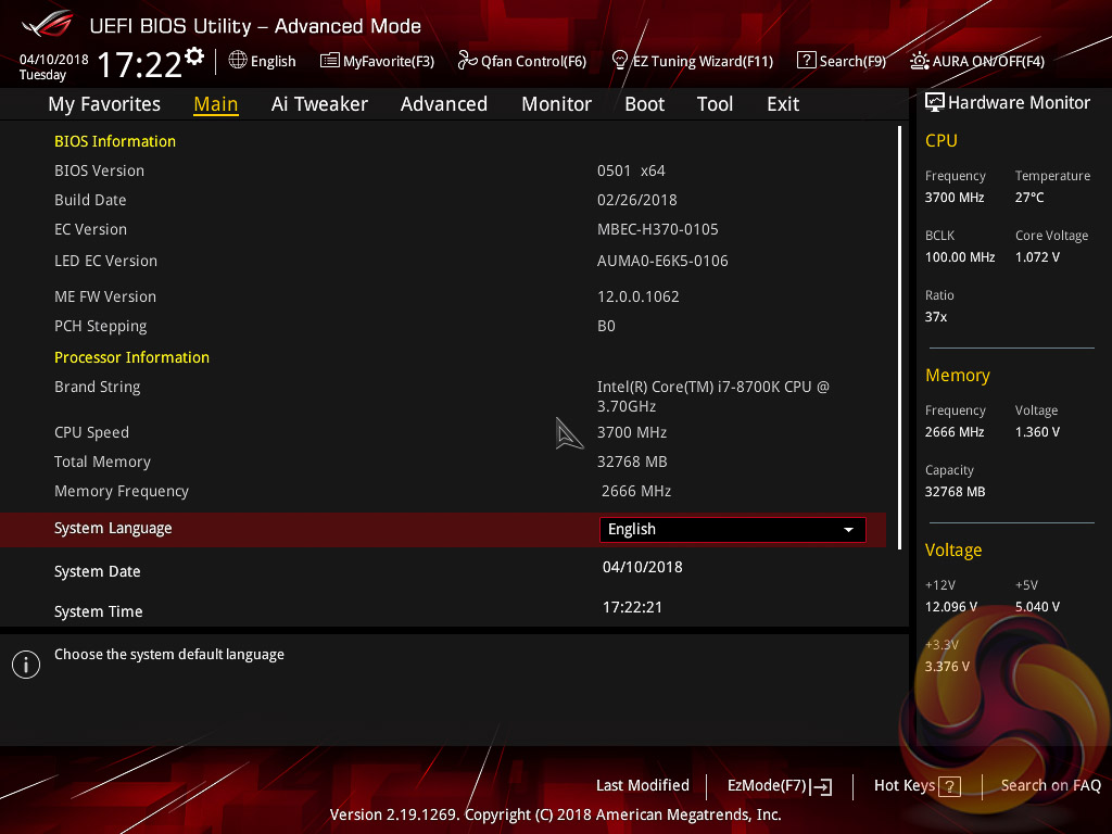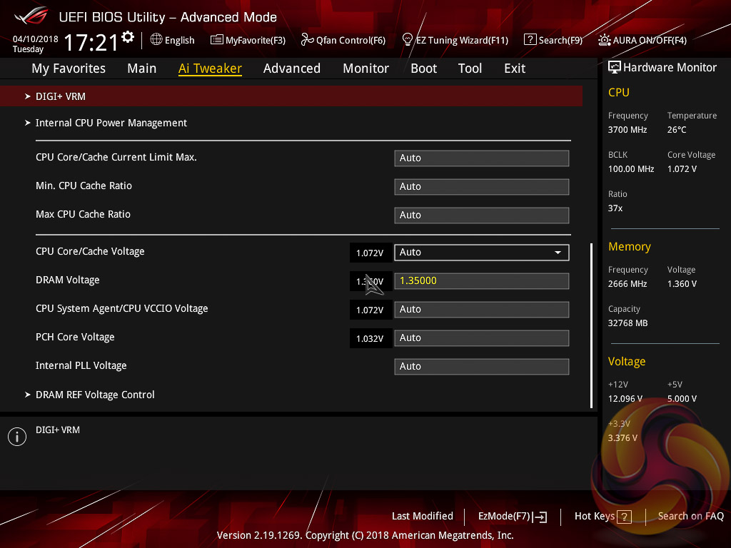 AI Tweaker is the UEFI tab which contains the vast majority of performance tuning settings pertaining to the CPU and DRAM. From here you can set XMP profiles, set all the various voltages and voltage operation modes, change the Load Line Calibration (LLC) and more. However, it's worth noting the CPU cannot be overclocked because this is the H370 chipset, and any XMP profiles higher than 2,666MHz will automatically be reduced to 2,666MHz.