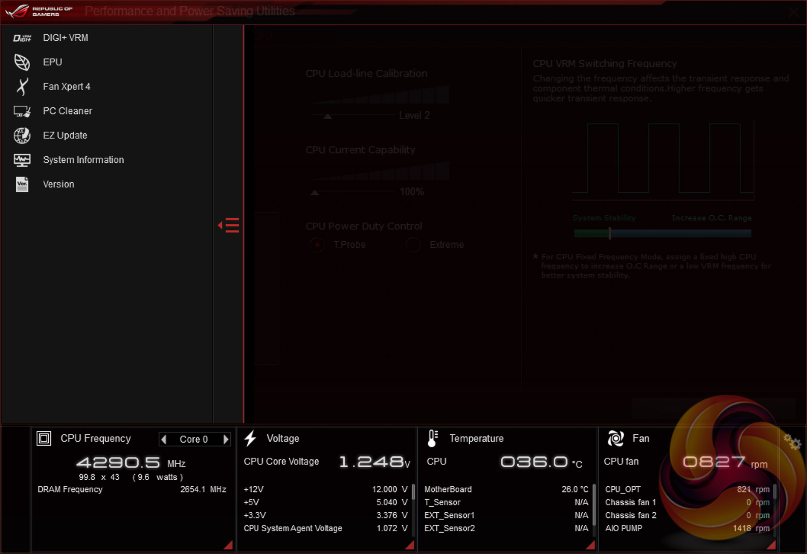 The main software utility for the ASUS motherboard range is the multi-function AI Suite III. It contains within it a significant number of utilities including the EPU, Digi+ VRM options, Fan Xpert 4, a cleaning utility and an ASUS software updating tool. There's no in-windows on-the-fly overclocking support as this is prohibited by the H370 chipset.