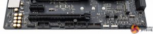 On the subject of RGB LEDs there is just a single zone which illuminates the rear I/O plastic shroud. The LEDs sit underneath the shroud on a separate PCB and the illumination comes through as a diagonal strip and the ROG logo. This RGB area is fully configurable in the ASUS AURA software and supports a wide range of colours and lighting modes, including synchronisation with the optional RGB headers.