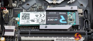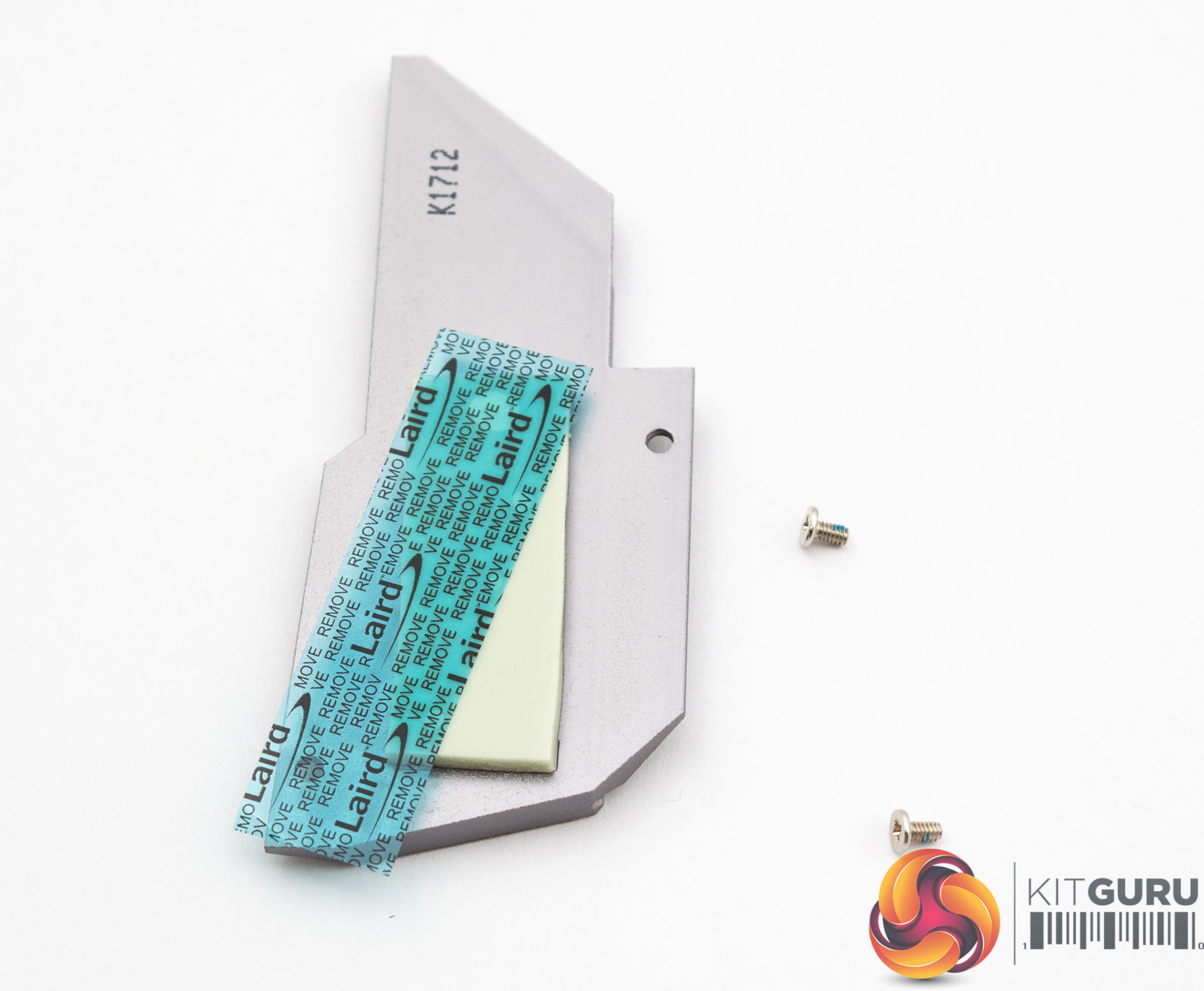 A couple of screws removes the top portion of the double decker heatsink and then a protective seal on a pre-fitted thermal pad needs to be removed before installing an M.2 drive.