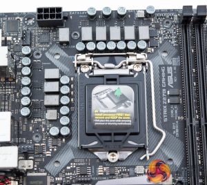 Each of the CPU MOSFETs are PowerPhase, Dual N-Channel units which combine the low-side and high-side FETs into a single package. These are capable of 20 and 32 Amps, high- and low-side, respectively, which is plenty for even the most heavily overclocked Kaby Lake CPU.