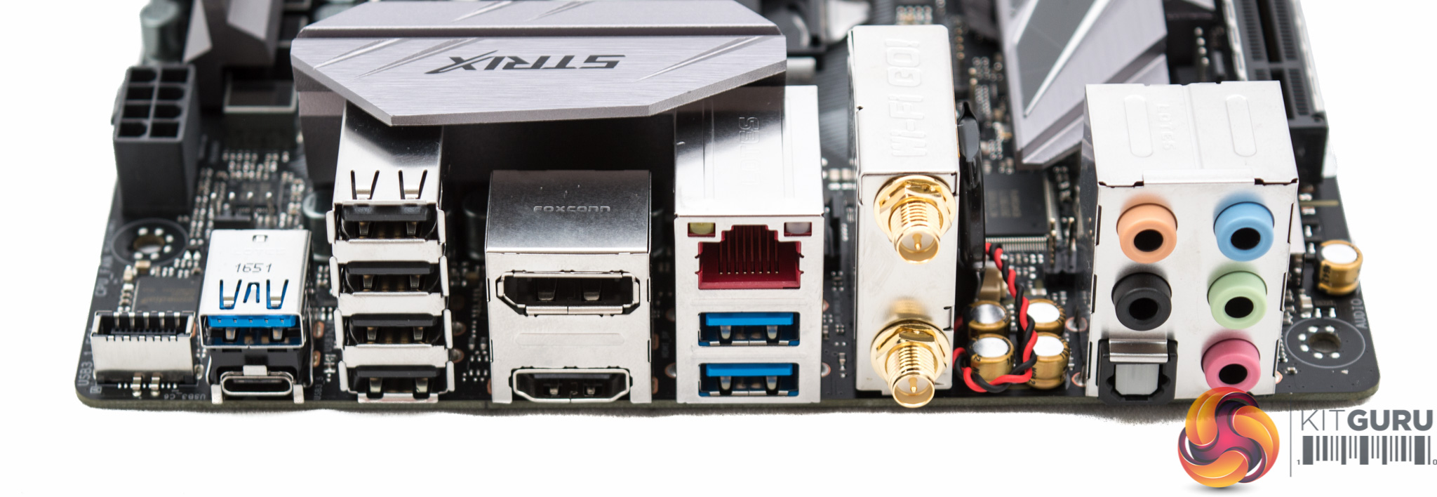The rear I/O is among the best in its class in terms of sheer numbers. The full complement of audio connections is available alongside an impressive eight USB ports. However, keep in mind that none of these are USB 3.1 while rival motherboards have two USB 3.1 ports. As such, it means the USB Type-C port is only USB 3.0 speed and to get USB 3.1 you need a case or case accessory that supports the ASUS USB 3.1 front panel header. These are available but they are not cheap.