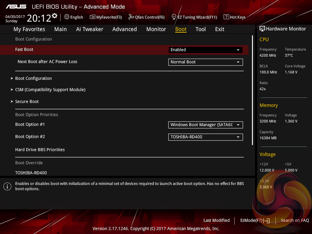 On the whole we find the ASUS UEFI environment to be intuitive and endowed with all the options users may need to achieve the vast majority, if not all, of performance- and compatibility-related issues. It also helps that ASUS hasn’t significantly overhauled the design of its UEFI in a long-while, some of its rivals have done this and it can be confusing for end-users. The ASUS UEFI is one of the strongest UEFI implementations on the market.