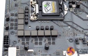 Around the CPU socket are two separate aluminium heatsinks with VRM cooling duties. There's no copper heat pipes in sight as these are reserved for higher-end SKUs. The CPU power supply is catered for with an 8 pin EPS power input.