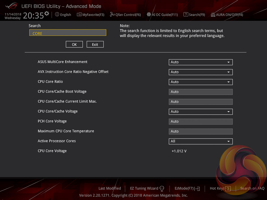 The search function allows a text string to be searched against all the UEFI parameters. It isn’t a smart search so doesn’t have an auto-fill function and will not find similar items to your search string i.e. M.2 when M2 is searched.