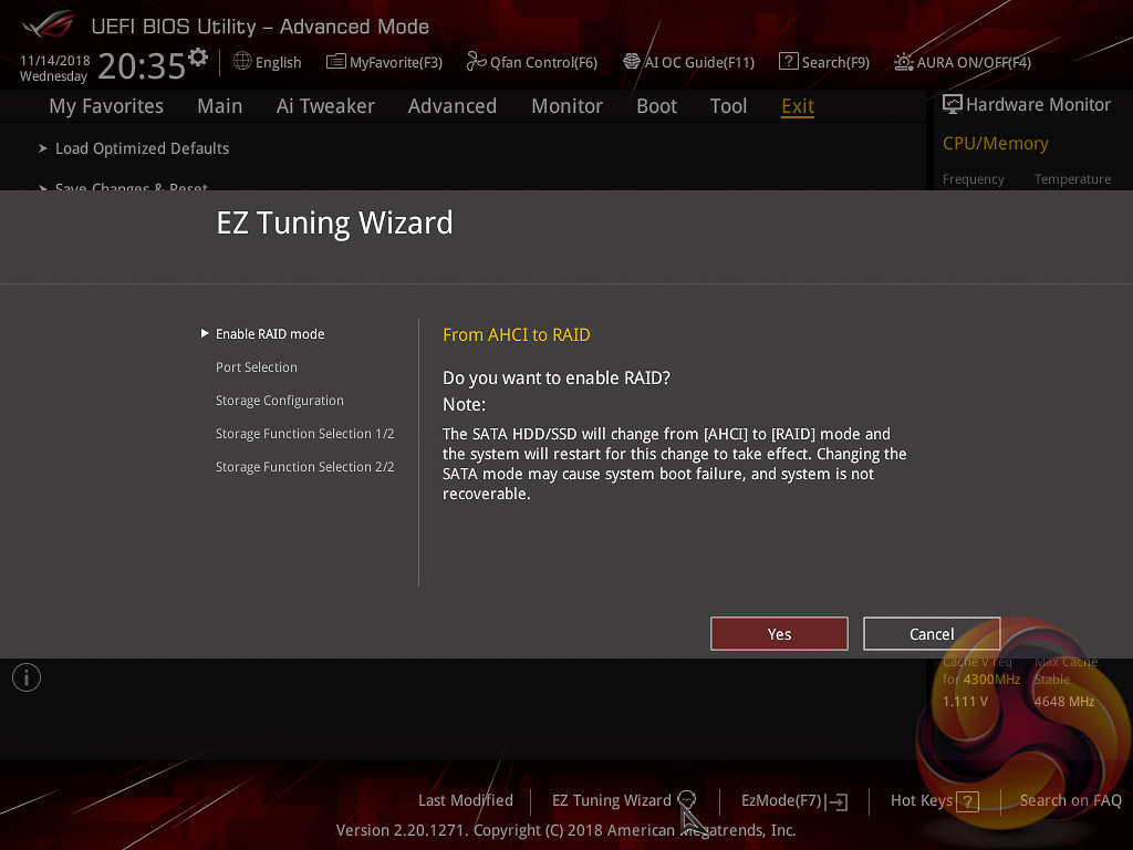 The EZ Tuning Wizard has been relegated to just being for RAID setup and configuration, like on the H370 platform where overclocking isn't supported. This used to be the “automated overclocking” utility until ASUS replaced it with the “AI Overclocking” guide.