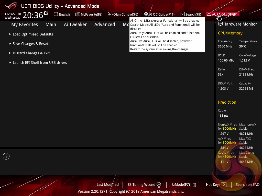 ASUS has some basic AURA RGB controls from within the BIOS that are variations of “on” and “off”. There is companion AURA RGB software to go with the motherboard that is used for the colour and lighting customisations.