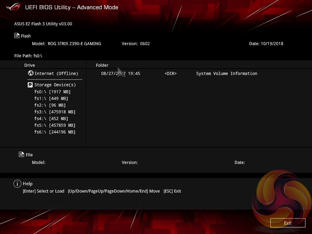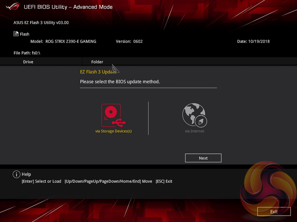The EZ Flash utility is very simple to use and allows the UEFI to be updated from either a local disk or the internet over the Intel I219V Gigabit Ethernet adapter.