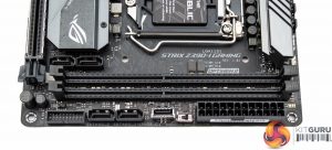 ASUS packs in a MemOK! switch, MemOK! LED and full debug LEDs to assist with the building and troubleshooting process. A front panel USB 3.1 header and a cooled M.2 slot are also welcomed additions.