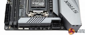 The exact configuration is not specified but ASUS does provide 6 phases worth of CPU VRM components, using 3 PWM signals which is a technique it calls “twin phases”, and then a further 2 phases worth iGPU VRM components, likely with 2 PWM signals. Then there are a few other ancillary phases around the CPU VRM for things like the VCCSA and VCCIO which give the illusion of a greater number of phases.