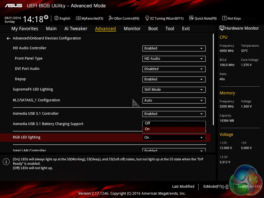 The “SupremeFX LED Lighting” refers to the red LED strip along the separated audio PCB. You can disable this completely or set it to one of three operation modes. There's also the option to turn the RGB lighting on or off, though customisation such as colour and lighting patterns have to be edited from within the AURA RGB software.