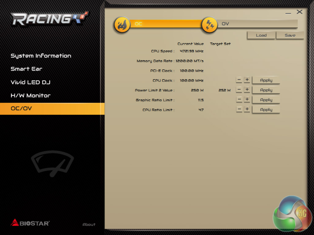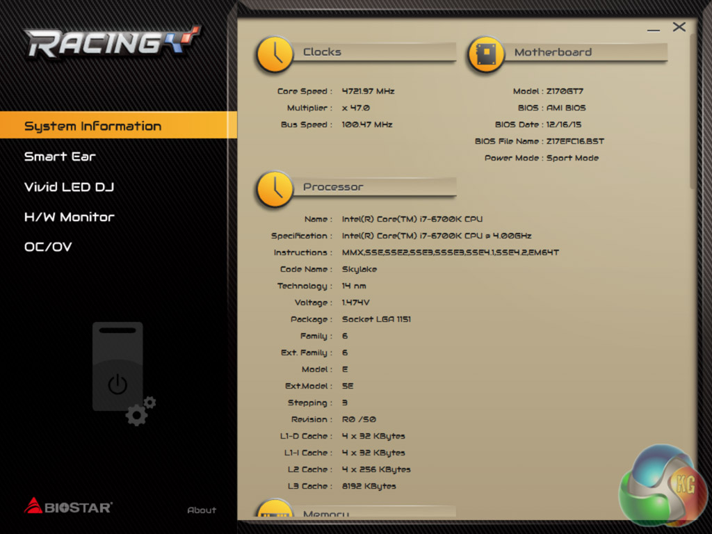 Motherboard software is hit and miss at the best of times so Biostar's strategy of focusing on only one piece of software for the Racing Z170 GT7 is astute. The “Racing GT” software is simple but useful for getting the most out of the motherboards features.
